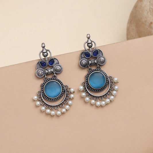 Eye-Catching Sky Blue Color Oxidised Earrings For Girls And Women