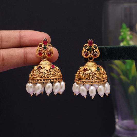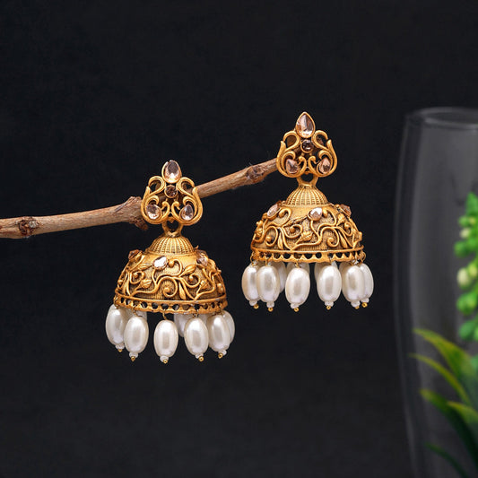 Rani Color Rajwadi Matte Gold Earrings (MGE227RNI)