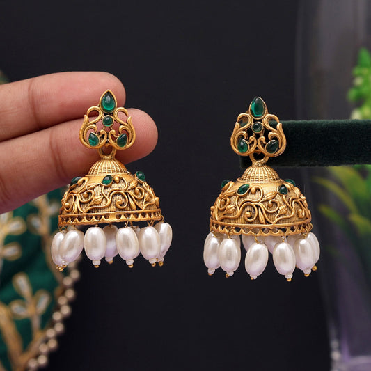 Rani & Green Color Matte Gold Earrings (MGE227RNIGRN)