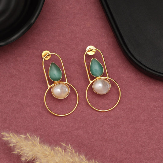 Green Color Rajwadi Matte Gold Earrings (MGE322GRN)
