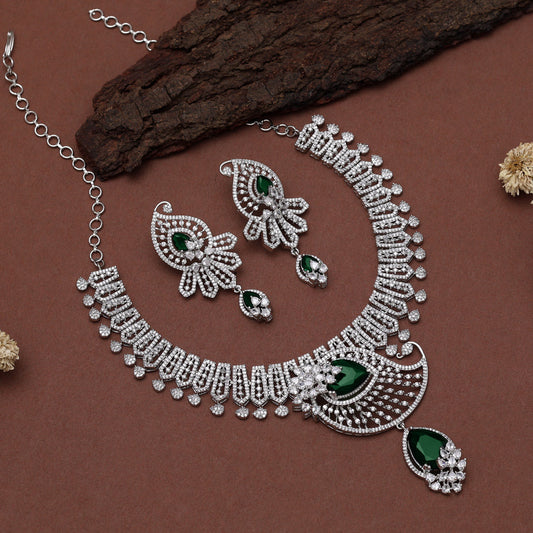 Green Color American Diamond Necklaces Set (CZN1040GRN)