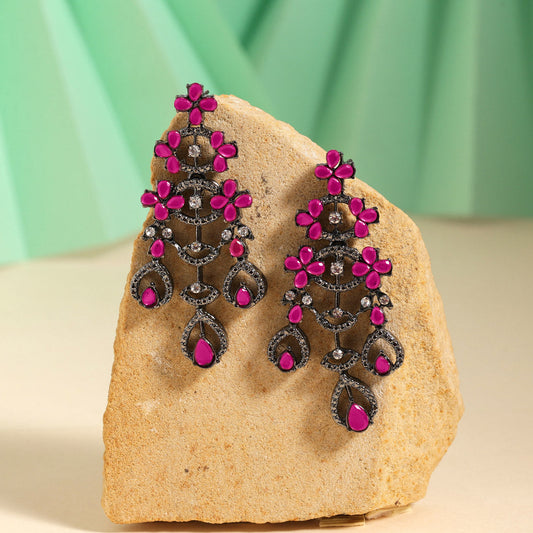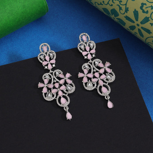 Pink Color Fashion Earrings With Elegant Stone Studs And Glossy Touch