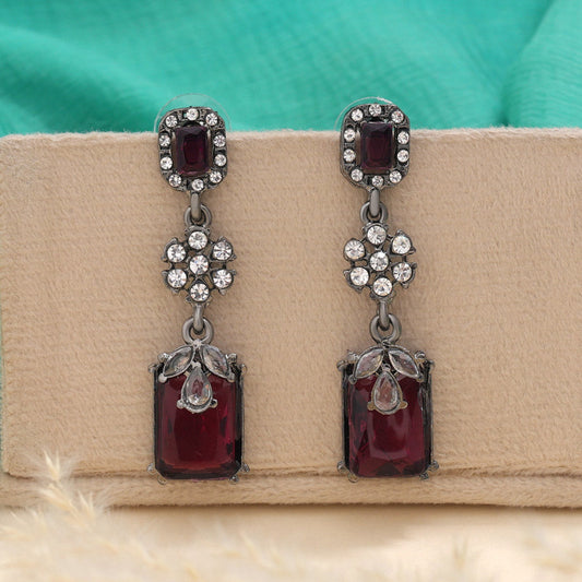 Black Color Glass Stone Oxidised Earrings (GSE2465BLK)
