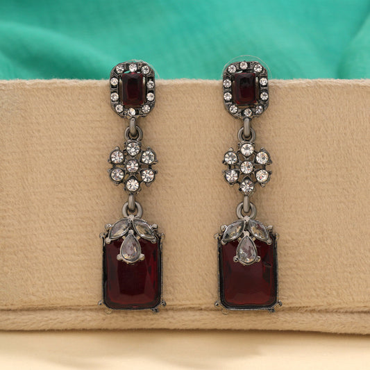 Maroon Color Fashion Earrings In Fancy Style With Pearl Droplets