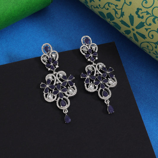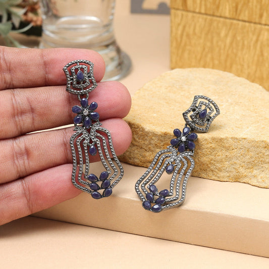 Blue Color Fashion Earrings With Designer Hanging Stones For Women