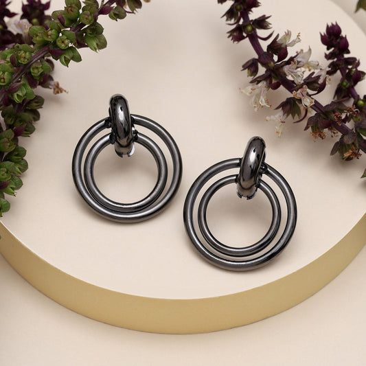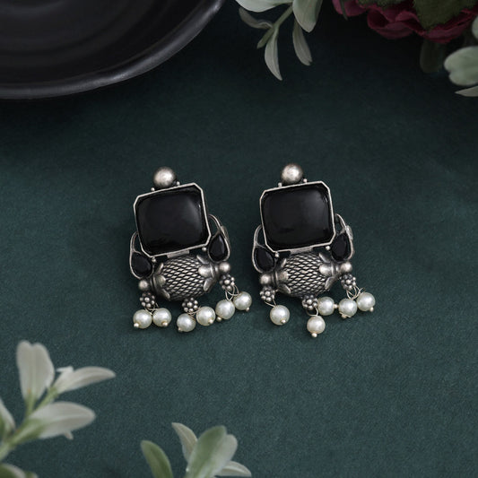 Stylish Black Color Oxidised Earrings With Antique Finish Detailing