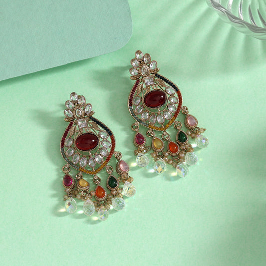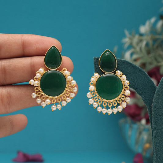 Rama Green Color American Diamond Earrings (ADE567RGRN)