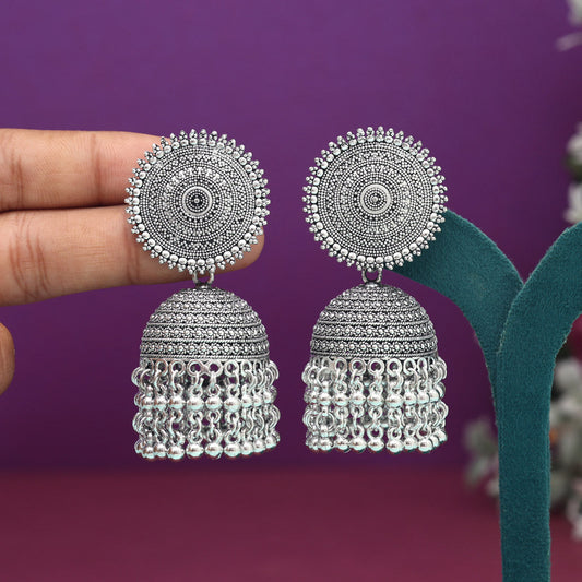 Silver Color Big Size Jhumka Oxidised Earrings (GSE2981SLV)
