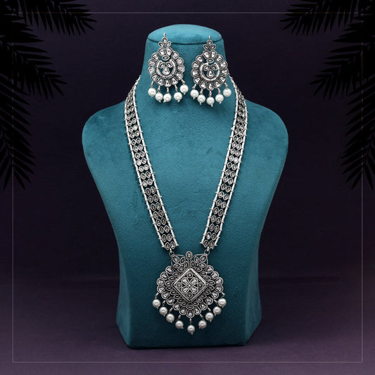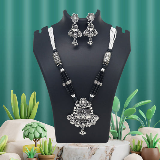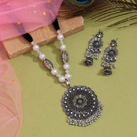 Silver Color Oxidised Necklace Set (GSN2051SLV)