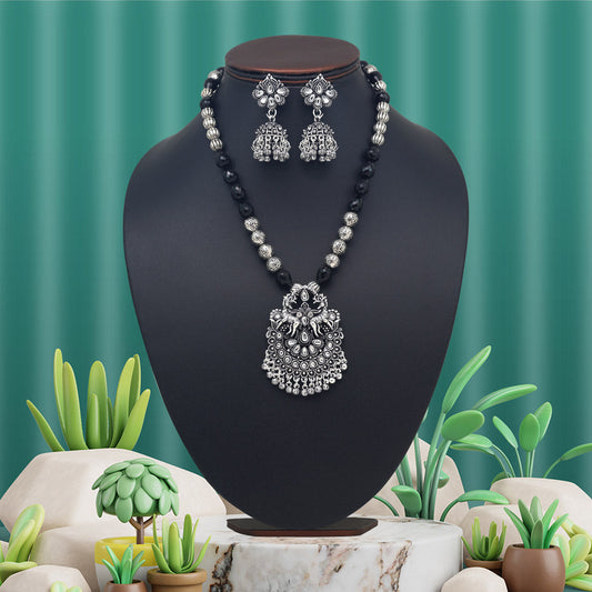 Silver Color Oxidised Necklace Set (GSN2042SLV)