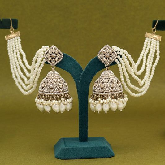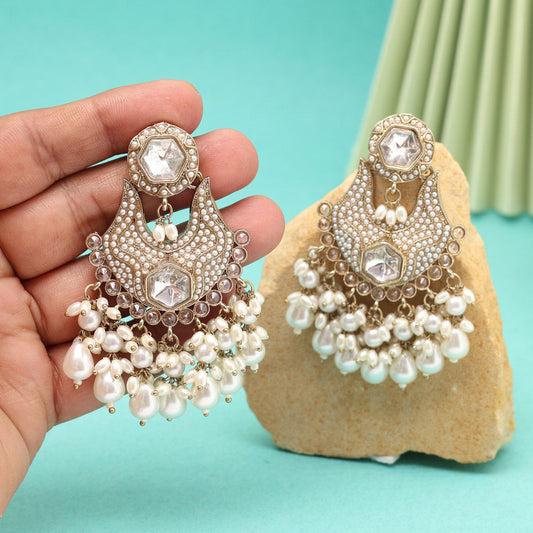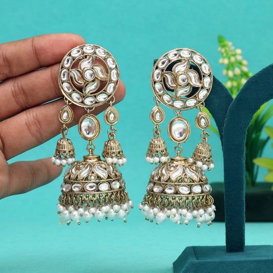 White Color Big Size Jhumka Kundan Earrings (KDE958WHT)