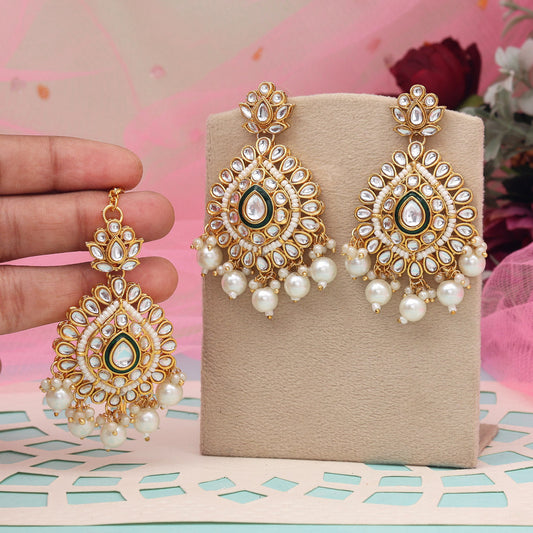 White Color Kundan Earrings With Maang Tikka (KDTE572WHT