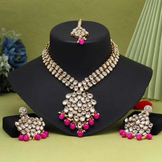 Green Color Meena Work Kundan Necklace Set (KN1452GRN)