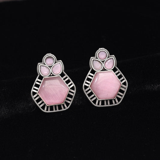 Pink Color Monalisa Stone Oxidised Earrings (GSE2834PNK)