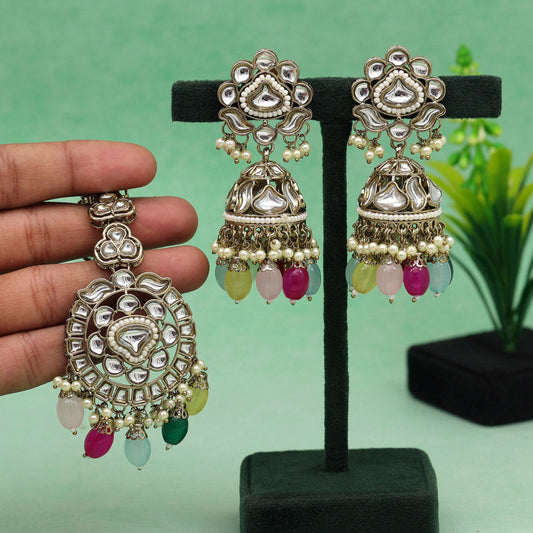 Multi Color Kundan Earrings With Maang Tikka (KDTE552MLT)