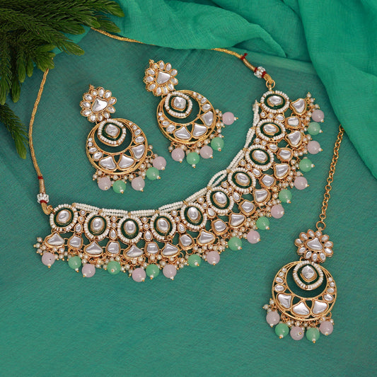 Pink & Pista Green Color Kundan Necklace Set (KN1363PNKPGRN)