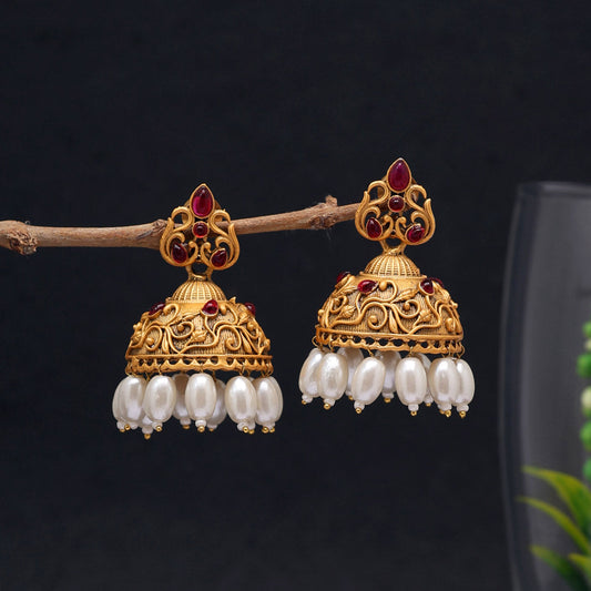 Rani Color Rajwadi Matte Gold Earrings (MGE227RNI)