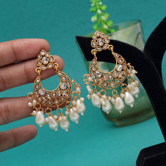 Gold Color Matte Gold Earrings (MGE292WHT)