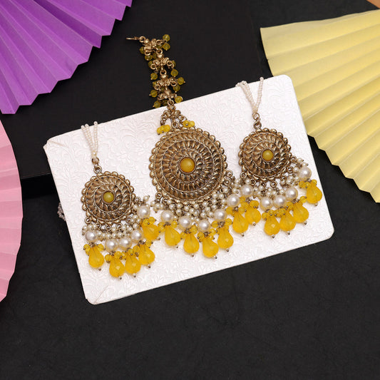 Yellow Color Earrings With Maang Tikka (MTKE468YLW)