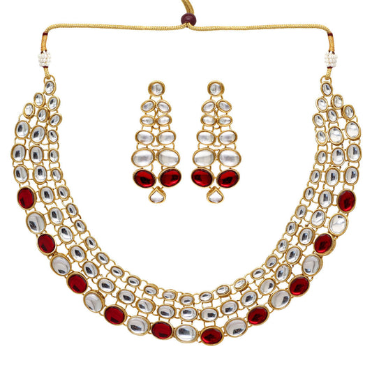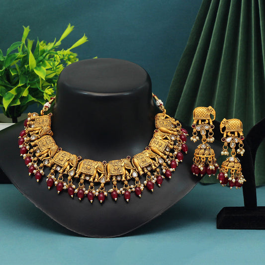 Rani Color Rajwadi Matte Gold Necklace Set (TPLN418RNI)