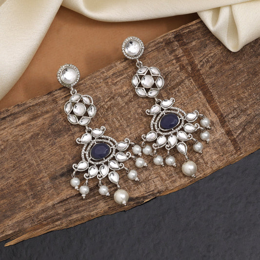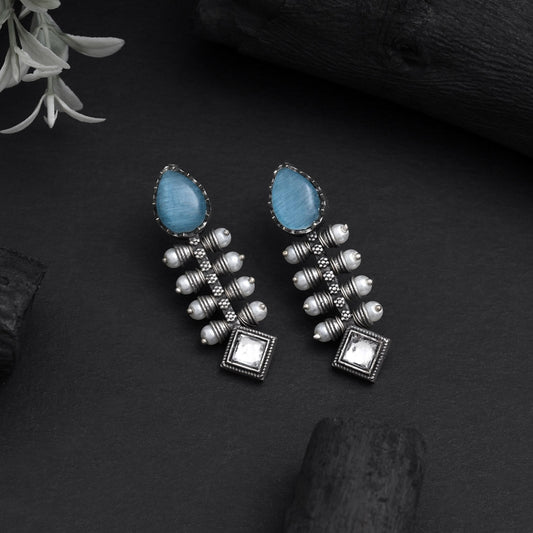 Stylish Sky Blue Color Oxidised Earrings With Intricate Design Touch
