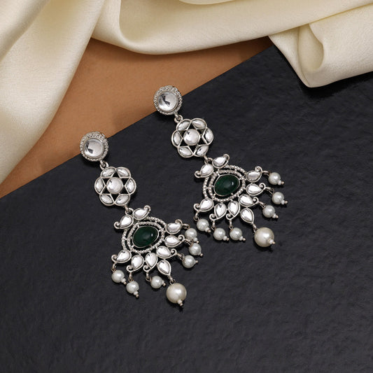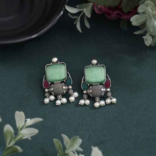 Pista Green Color Oxidised Earrings In Bold And Artistic Finish