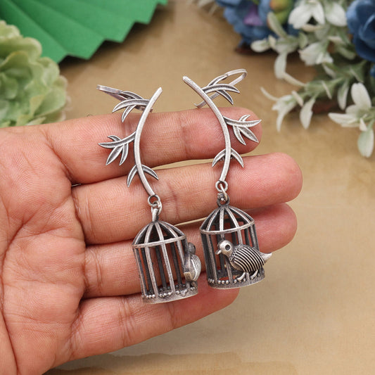 Statement Silver Color Oxidised Kaanphool Ear Cuff Style Fashion Earrings