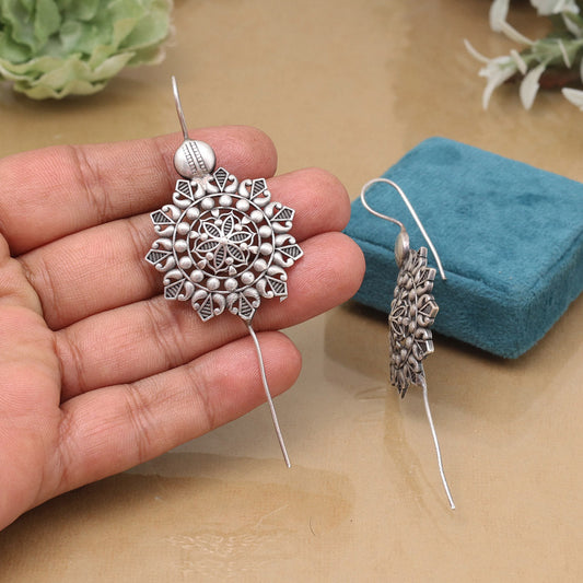 Silver Color Oxidised Floral Carved Elegant Traditional Look Fashion Earrings