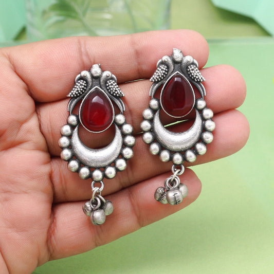 Maroon Color Oxidised Earrings Ideal For Bridal Or Casual Outfits