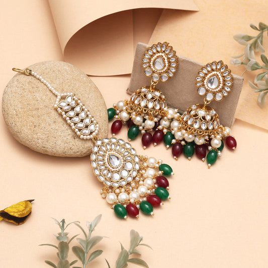 Maroon & Green Color Kundan Necklace Set Styled For Wedding Outfits
