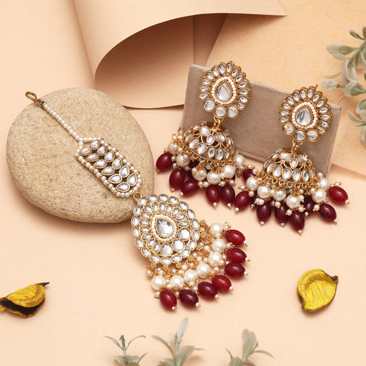 Maroon Color Kundan Necklace Set Crafted For Rich Traditional Look