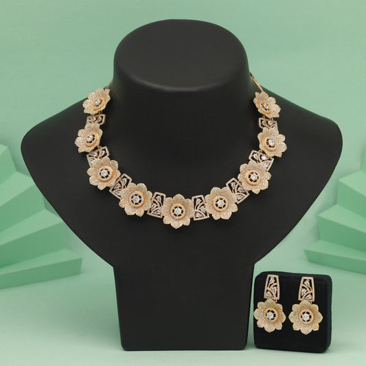 White Color American Diamond Necklace Set With Gleaming Crystal Accents Throughout