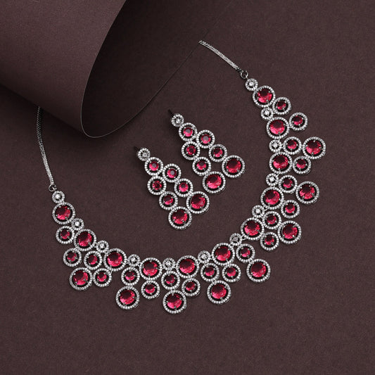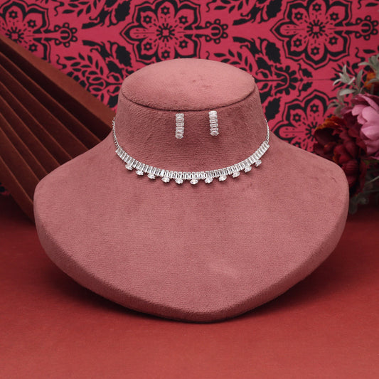 Silver Color American Diamond Necklace Set With High Shine And Smooth Texture