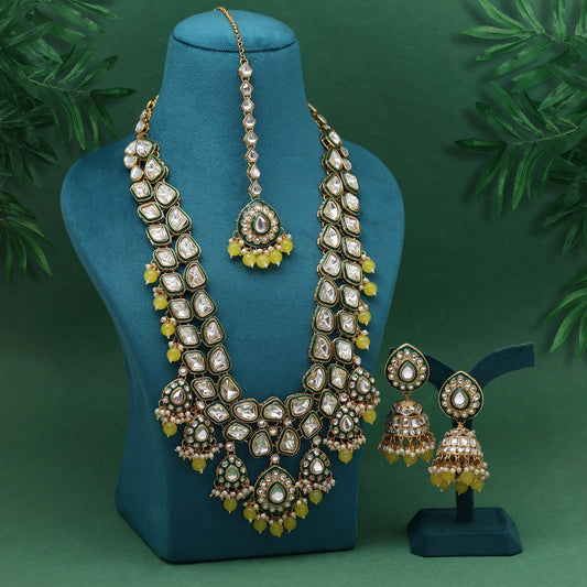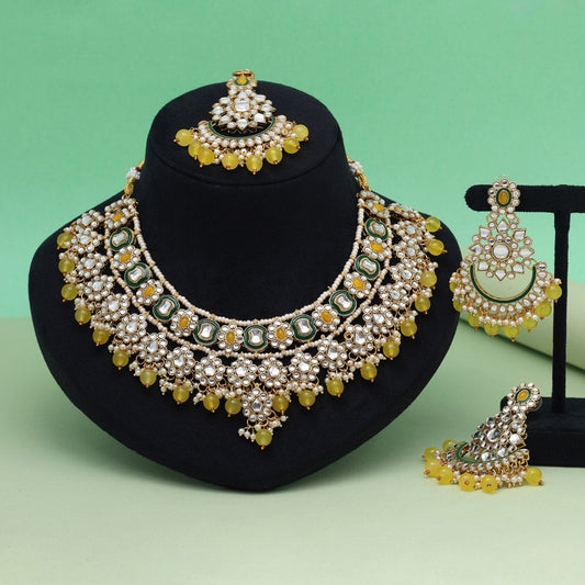 Yellow Color Elegant Meena Work Kundan Necklace Set