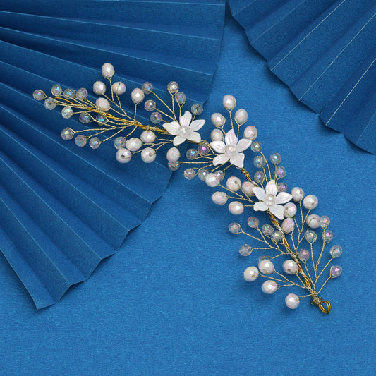 Wedding Style White Color Oxidised Ear Cuff Earrings With Shine