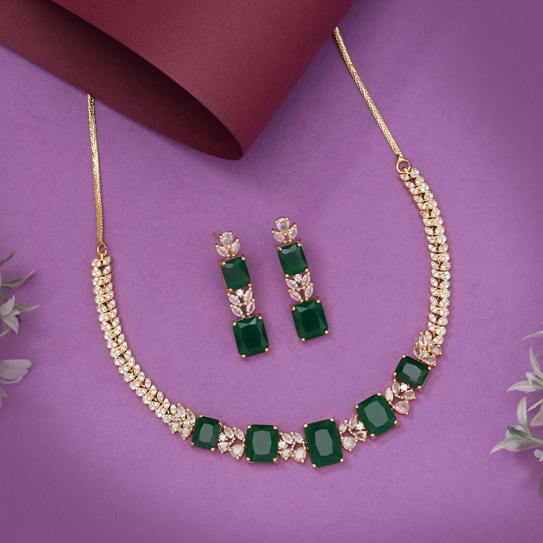 Green Color American Diamond Necklaces Set