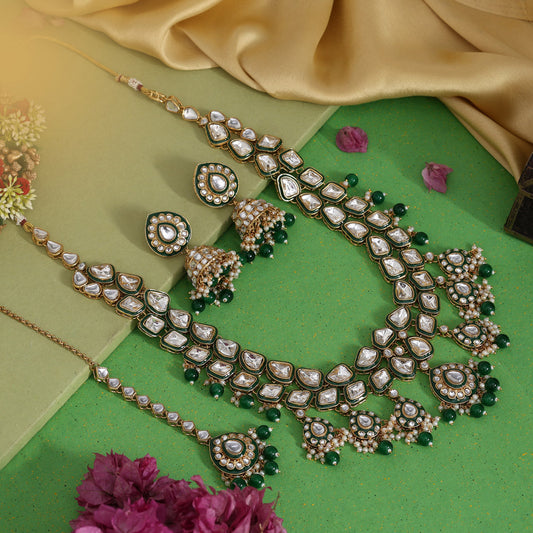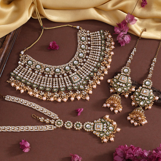 Green Color Choker Matte Gold Meenakari Necklace Set (MKN618GRN)