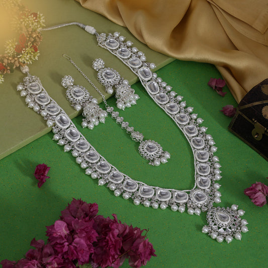 White Color Unique Handmade Brass Metal With Moissanite Kundan Apala Polish Hasli Necklace Of Jaipur (CZN1062WHT)