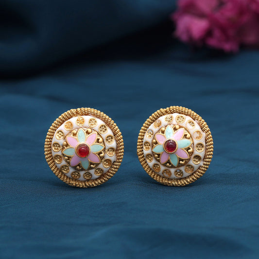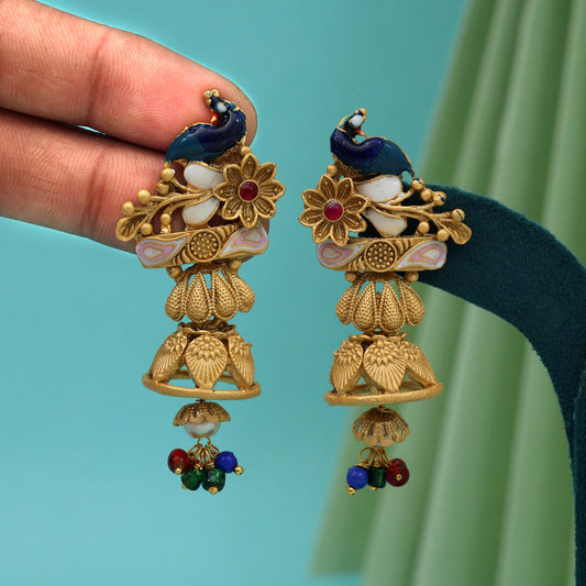 Multi Color Rajwadi Matte Gold Earrings (MGE321MLT)