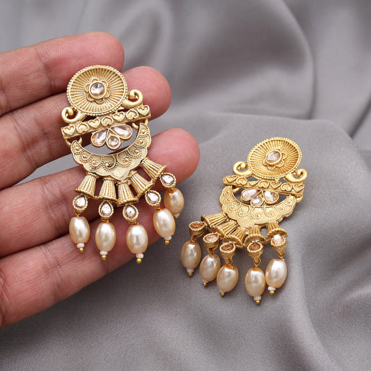 Gold Color Rajwadi Matte Gold Earrings (MGE330GLD)