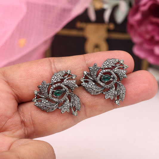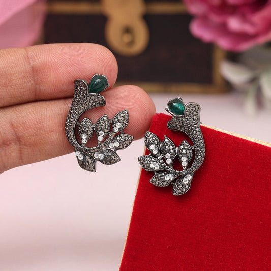 Green Color Black Antique Earrings (DRKDE172GRN)