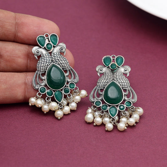 Pista Green Color Oxidised Earrings (GSE2993PGRN)