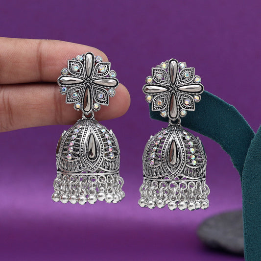 Silver Color Big Size Jhumka Oxidised Earrings (GSE3005SLV)