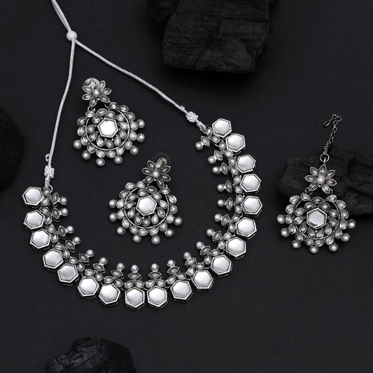 Silver Color Oxidised Necklace Set (GSN2069SLV)
