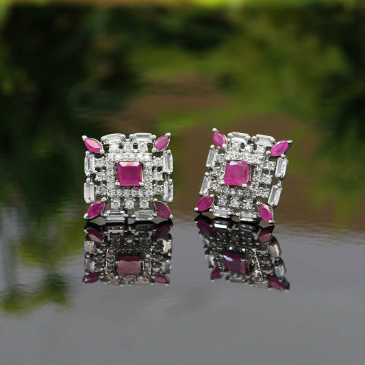 Maroon Color Monalisa Stone Oxidised Earrings (GSE2831MRN)