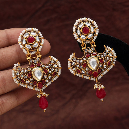 Rani Color Rajwadi Matte Gold Earrings (MGE228RNI)