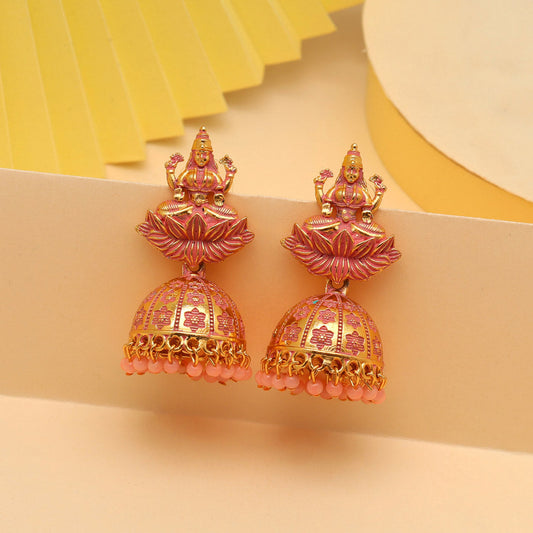 Peach Color Goddess Lakshmi Oxidised Mint Meena Earrings (MNTE478PCH)