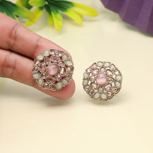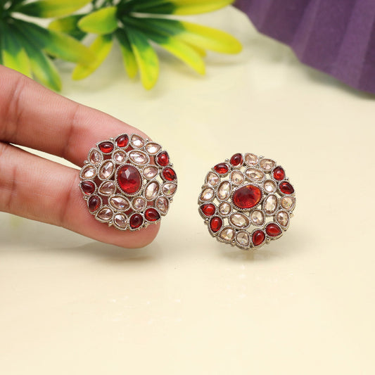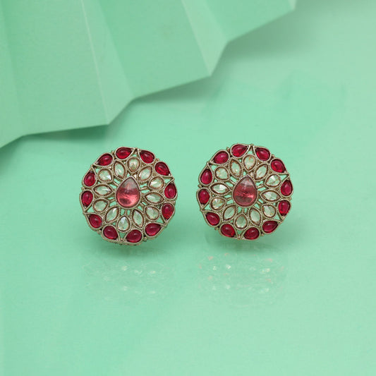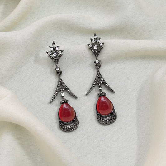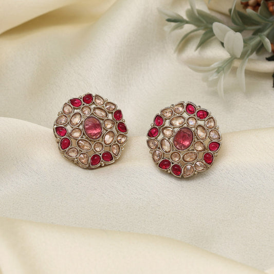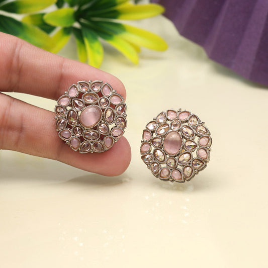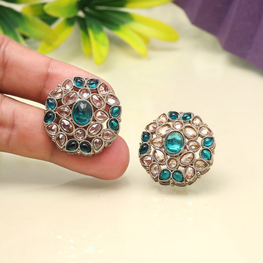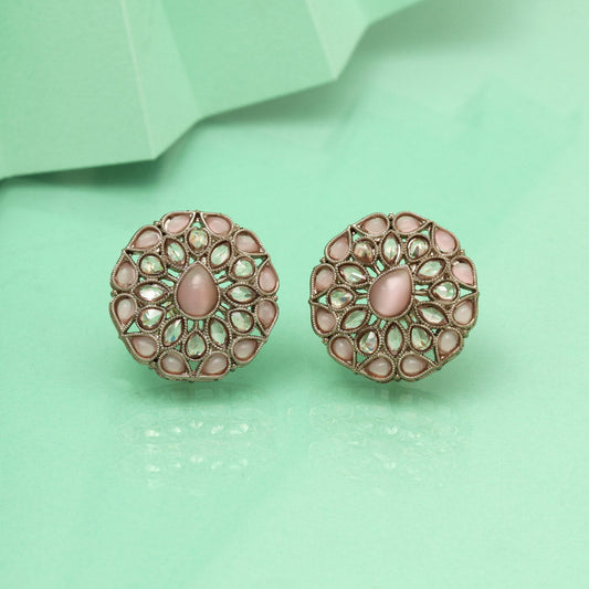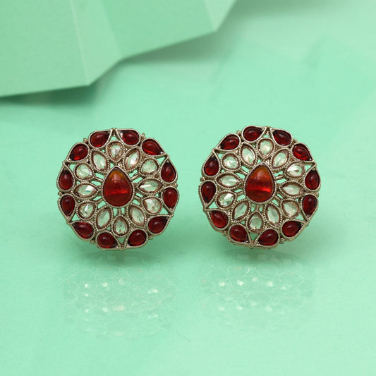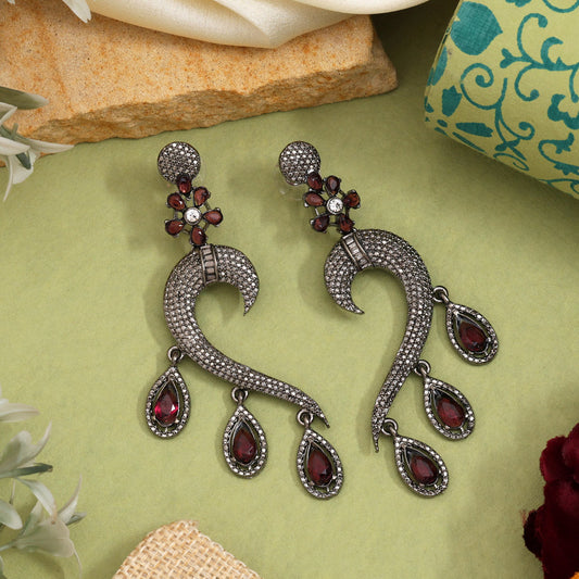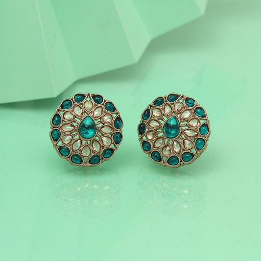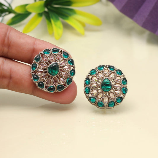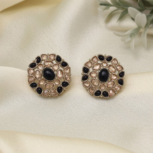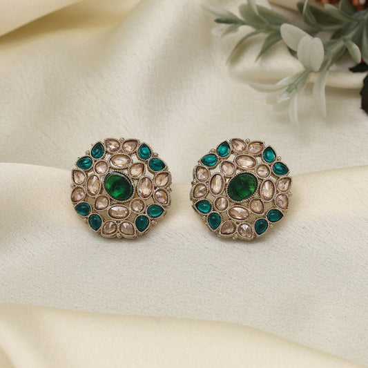 Bold Design In Silver Color Antique Stone Earrings For Modern Vintage Vibe