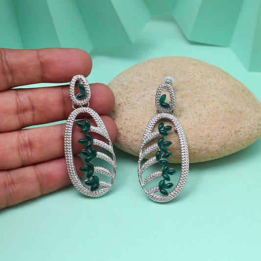 Green Color Fashion Earrings With Leaf-Inspired Elegant Jewelry Design Theme