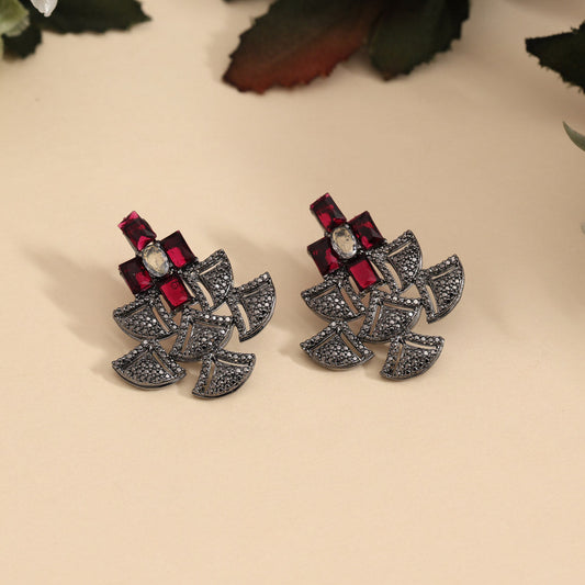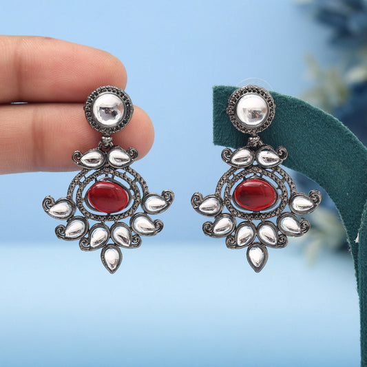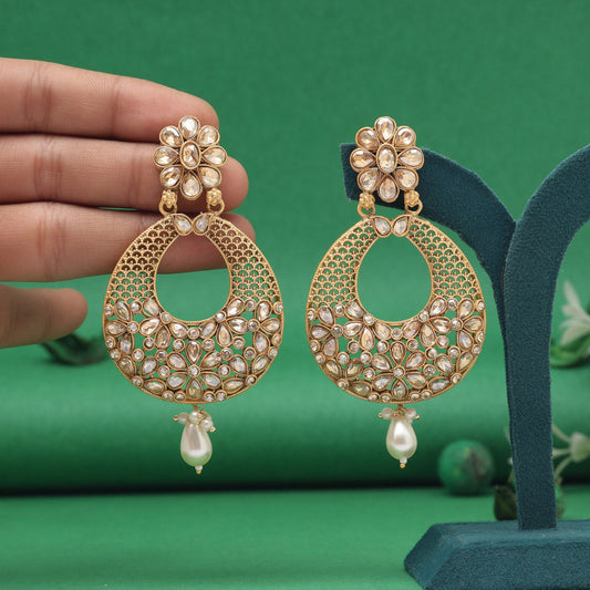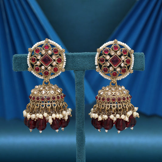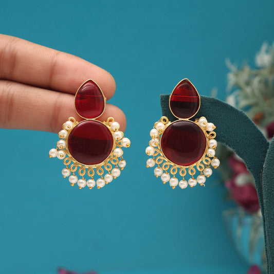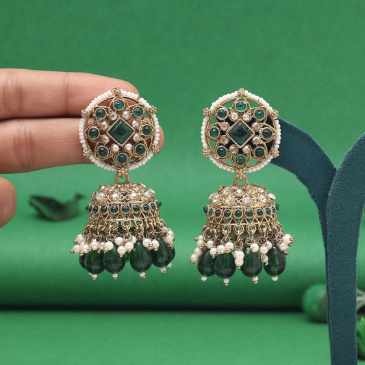 Rani & Green Color Rajwadi Matte Gold Earrings